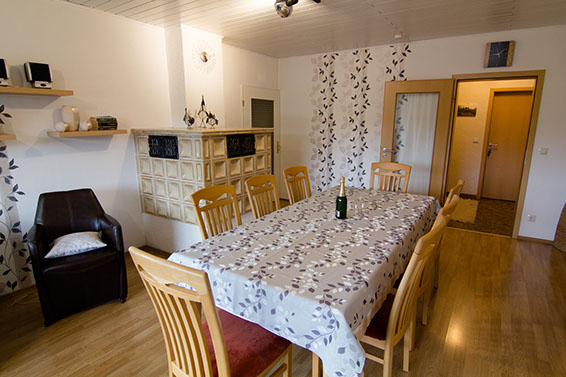 Das helle, freundliche Wohn-/Esszimmer mit einem Kachelofen und kostenlosem W-Lan-Anschluss. Hier triffft man sich zum Essen, Spielen, Relaxen oder ...