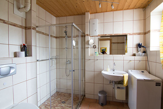 Das kleine Bad mit Dusche, WC und Waschbecken ist direkt von der Diele her zu erreichen.