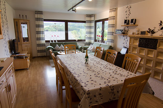 Das helle, freundliche Wohn-/Esszimmer mit einem Kachelofen und kostenlosem W-Lan-Anschluss. Hier triffft man sich zum Essen, Spielen, Relaxen oder ...