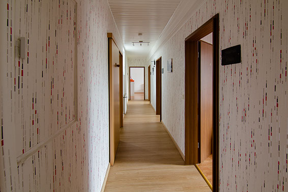 Von der Diele aus gelangen Sie in den separaten Flur mit Zugang zu den vier Schlafräumen und dem zweiten Bad.
